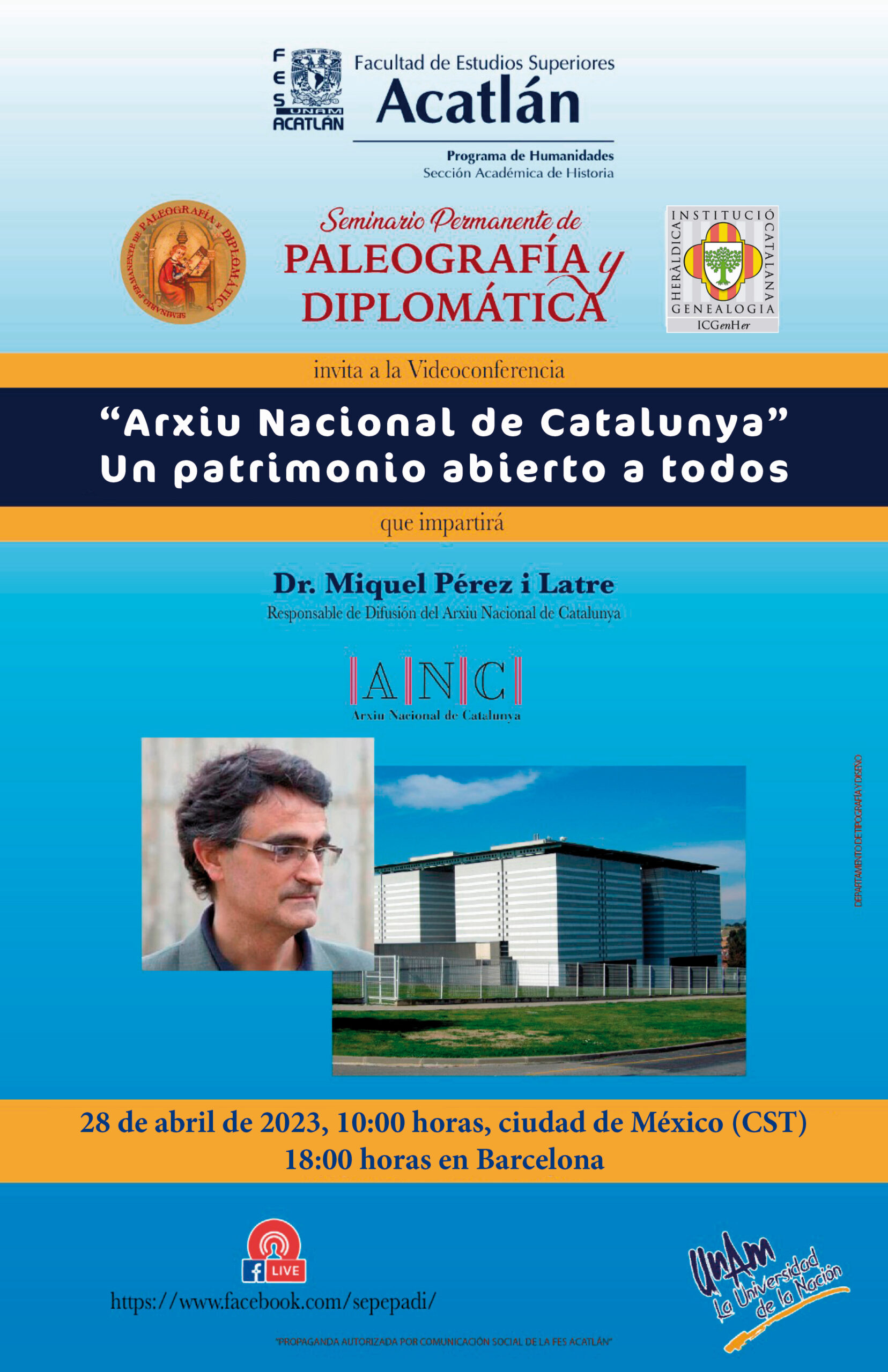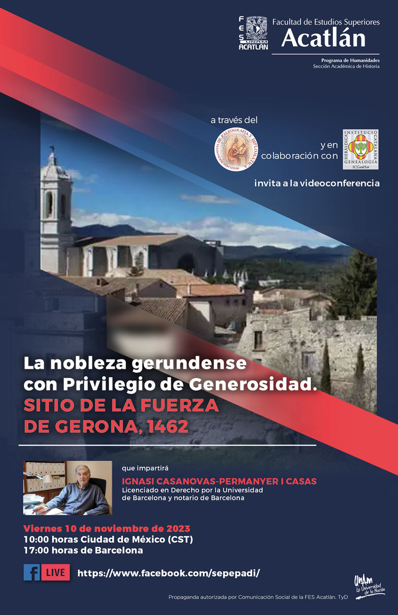organitzades per l’UNAM de Mèxic. “Seminario Permanente de Paleografia y Dipolomática” dirigida pel Dr. Miguel Ángel Cerón i coordinades a Barcelona per Ignasi Ametlla. Vídeo conferències: aquestes conferències les podreu seguir per Facebook (https;//www.facebook.com/sepepadi/) i les penjarem a la pàgina web de la ICGenHer. Divendres 12 d’abril del 2024, a les 18 h. “La Heráldica como signo de identidad”. Dra. Leticia Darna i Galobart Socia i …